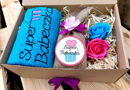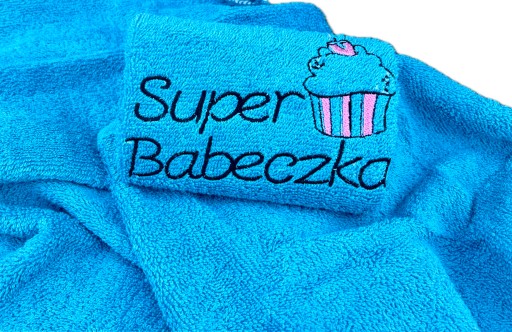 - śliczny ręcznik do rąk (30x50 cm) z haftem Super Babeczka, gramatura 500g/m2,