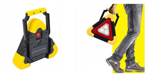 TRÓJKĄT OSTRZEGAWCZY LED LATARKA LAMPA POWER BANK SOLARNY SAMOCHODOWY