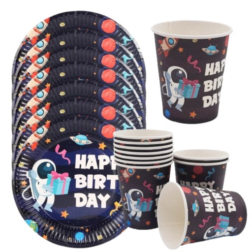ZESTAW KOSMOS TALERZYKI KUBECZKI TALERZYKI URODZINOWE