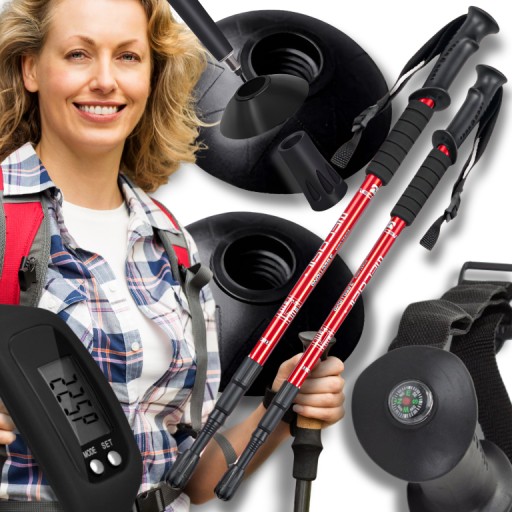 Kijki do Nordic Walking z Systemem ANTI-Shock – Duża regulacja, 3 końcówki + Krokomierz