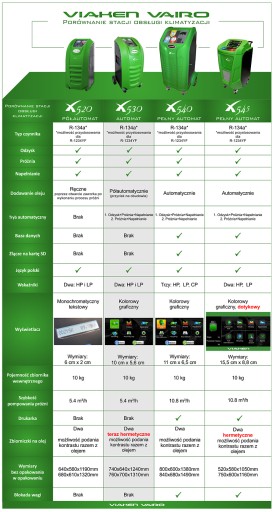 Automatyczna stacja obsługi samochodowej klimatyzacji VIAKEN X545 Nowy model, przeznaczona do precyzyjnego i skutecznego serwisowania klimatyzacji samochodów osobowych, ciężarowych, maszynach budowlanych i rolniczych, Idealny sprzęt dla serwisów, warsztatów i stacji obsługi pojazdów, posiada certyfikat CE. Zaawansowane filtry odkwaszająco - osuszające użyte w urządzeniu umożliwiają dokładną regenerację odzyskanego czynnika chłodniczego oraz ponowne jego użycie równocześnie z odseparowaniem zużytego oleju.
