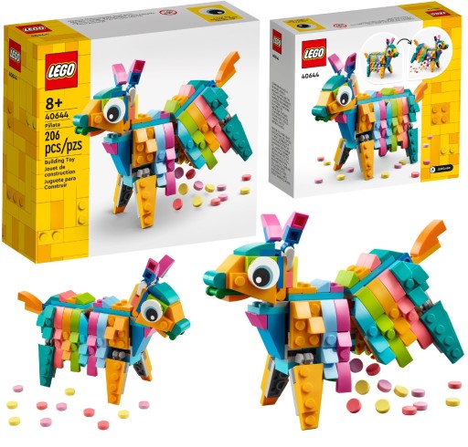 Zestaw LEGO® Piniata (40644) dla ośmiolatków i starszych dzieci wprowadzi imprezowy nastrój na każdym przyjęciu. Tradycyjna meksykańska zabawa przybrała postać kolorowego osła z ruchomą głową, szyją, ogonem, nogami i uszami. W piniacie można ukryć małe klocki LEGO imitujące cukierki, które po otworzeniu będą wypadać ku uciesze dzieci i dorosłych. Zestaw to świetna ozdoba na każdą imprezę i nie tylko.