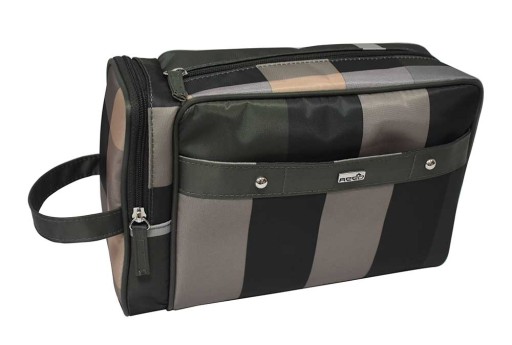 Kosmetyczka wykonana z ładnego, wysokiej jakości, nieprzemakalnego materiału. Ładny, sportowy, oryginalny design męskiej kosmetyczki, a zarazem elegancki. Bardzo wygodna, ładna, niezwykle pojemna, funkcjonalna. Kosmetyczka w odcieniu koloru grafitowego. Kosmetyczka zamykana na suwak. Wewnątrz wyposażona jest w dwie kieszonki z podszewki. Z przodu na zewnątrz dodatkowa kieszonka zamykana na magnes i metalowe logo REED.