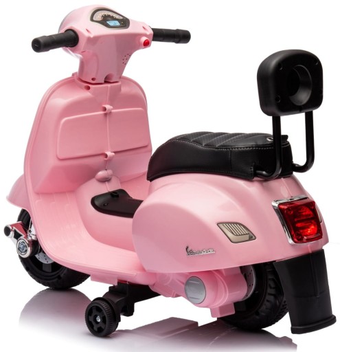 Jeździk akumulatorowy Scooter Vespa z siedzeniem z ekoskóry z przeszyciem i Kolor Różowy