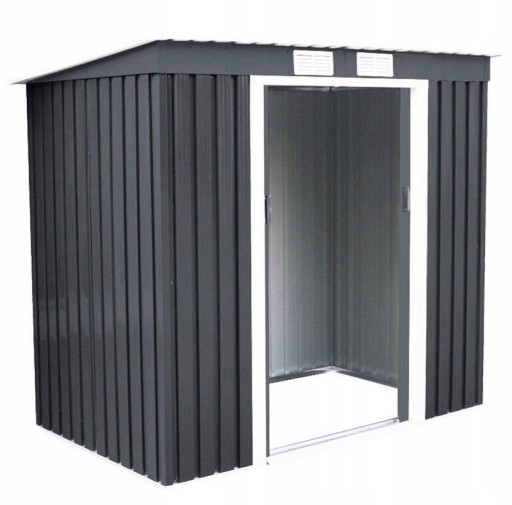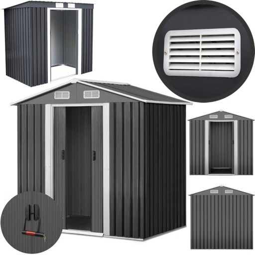 - Domek ogrodowy na narzędzia, urządzenia i meble ogrodowe wykonany z blachy stalowej ocynkowanej ogniowo odpornej na warunki atmosferyczne.