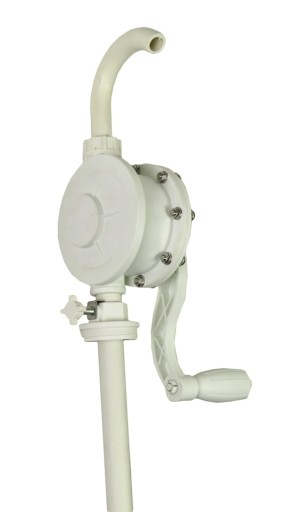 Ręczna pompa na korbę przeznaczona do pompowania agresywnych cieczy o niskiej lepkości takich jak: płyn do spryskiwaczy, płyn do chłodnic, roztwór Adblue, produkty petrochemiczne, glikole, alkohole, detergenty.