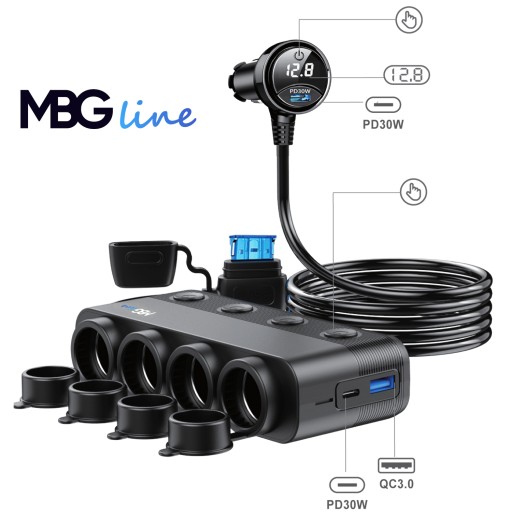 - Wielofunkcyjność: Dzięki różnym portom USB (w tym szybki port QC3.0, porty USB-C PD 30W) oraz gniazdom zapalniczki, rozdzielacz umożliwia ładowanie różnych urządzeń jednocześnie, bez konieczności korzystania z osobnych ładowarek.