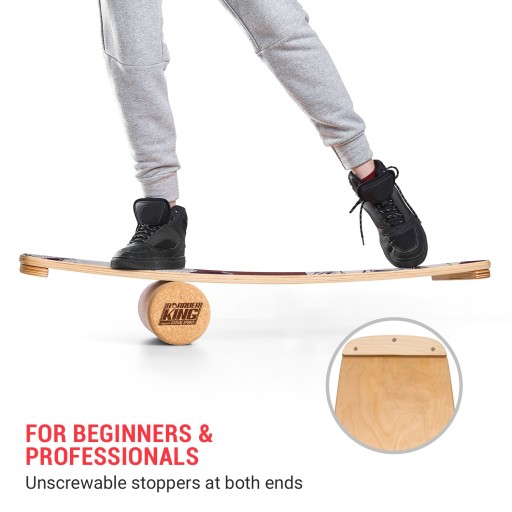 Jakość, którą widzisz i czujesz: platforma balansowa Indoorboard Curved marki BoarderKING została zaprojektowana i wyprodukowana w Niemczech. Składa się z dziesięciu warstw drewna klonowego, które zapewniają mu niezwykle wysoką stabilność i elastyczność. Powierzchnia jest szorstka dla lepszego utrzymania się na platformie. Stopery na końcach deski pomagają początkującym w ćwiczeniach trików, a profesjonaliści mogą je po prostu odkręcić. Aby można było od razu rozpocząć trening, w zestawie znajduje się antypoślizgowa, zwijana mata korkowa o wymiarach 66 x 183 cm i łatwy do ćwiczeń dla początkujących wałek korkowy o wymiarach 10 x 40 cm. Korek pochodzi ze zrównoważonych upraw w Portugalii. Wszystkie części zestawu zostały wykonane w procesie produkcji zasilanej energią słoneczną.