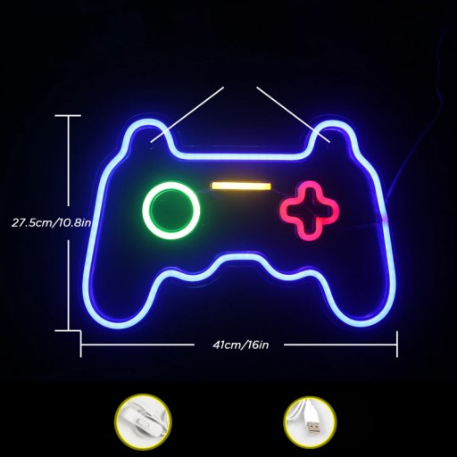 KOLOROWY NEON w kształcie kontrolera gier gamepad to świetny pomysł na dekorację biura, studia gier, studia nagrań czy gadżet imprezowy na spotkanie ze znajomymi. Z takiego prezentu ucieszy się każdy miłośnik oryginalnych ozdób ściennych czy gamingowych gadżetów.