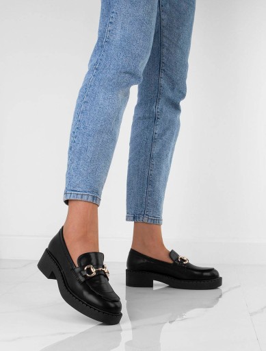 CZARNE MOKASYNY Z ŁAŃCUSZKIEM EKOSKÓRA 39