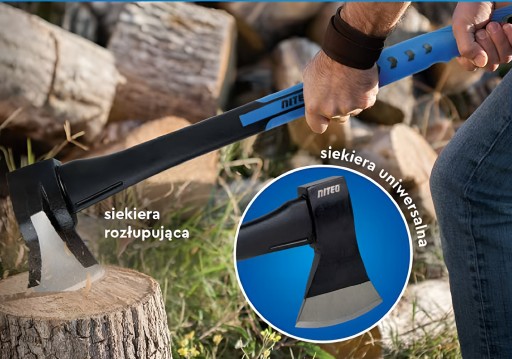 Siekiera posiada głowicę rozłupująca z wąskim ostrzem oraz wyprofilowanym klinem, zapewniając łatwe rozłupywanie drewna.