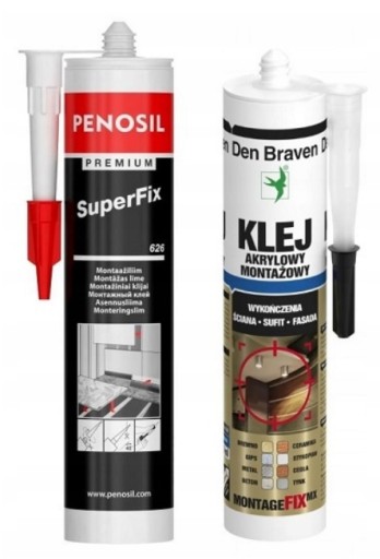 Panele montujemy na klej montażowy Penosil lub Den Braven który jest dostępny na naszych innych aukcjach.