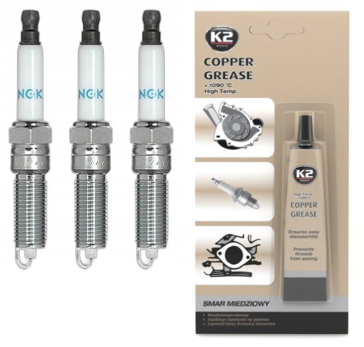 NGK 94051 Świeca zapłonowa - zestaw 3 sztuk + smar miedziowy K2 Copper Grease