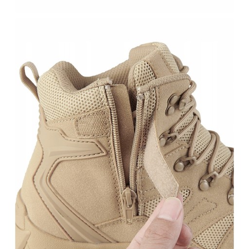 BUTY TAKTYCZNEWykonane według najnowszej technologii z solidnych materiałów.Zwiększoną odporność na cięcia, przetarcia i zużycie zapewnia nylon, a komfort termiczny w każdych warunkach dobrze oddychająca impregnowana zamszowa skóra bydlęca.Miękka wyściółka wewnętrzna z oddychającego materiału, zwiększa cyrkulację powietrza w bucie.Cholewka wykończona kołnierzem poprawiającym szczelność buta.System szybkiego sznurowania wykorzystujący miękkie przelotki oraz system Speed Lace ułatwia zakładanie.Haczyki i oczka systemu sznurowania są wykonane z lekkiego nierdzewnego stopu metalu.Wysoko wszyty język wypełniony mikrowłóknami z przelotką utrzymującą go w pożądanej pozycji.Podeszwa w systemie kanapkowym wykonana z antypoślizgowej, olejoodpornej gumy.Lekka pianka EVA absorbuje i amortyzuje drgania.Specjalny bieżnik kierunkowy zapewnia doskonałą przyczepność nawet na śliskich nawierzchniach.System stabilizacji pięty i kostki gwarantuje bezpieczeństwo i wygodę.Miękka wkładka obszyta oddychającym materiałem.Nylonowy języczek ułatwia zakładanie buta.W komplecie wytrzymałe sznurówki nylonowe.