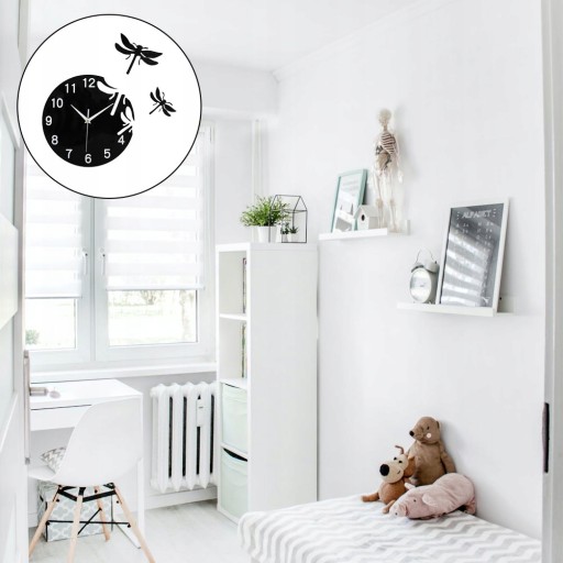 3d projekt zegara ściennego z delikatnym wystrojem dragonfly, jest to dobra dekoracja ścienna.