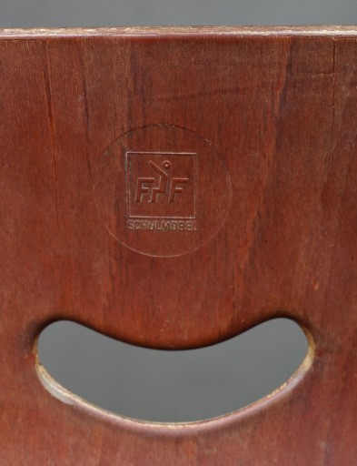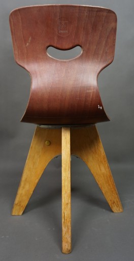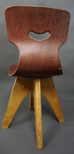 Krzesło niemieckiej marki Flototto \ Pagholz Schulmöbel projektu Adama Stegnera. Model pochodzi z lat 60. – 70. XX w. Krzesło ma ergonomiczne oparcie, które idealnie podpiera kręgosłup dziecka. Stabilne drewniane nogi.
