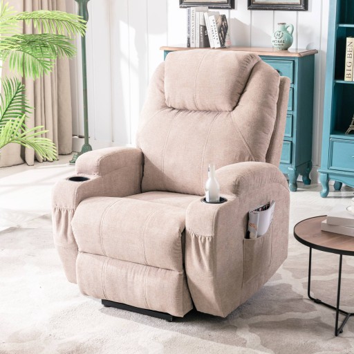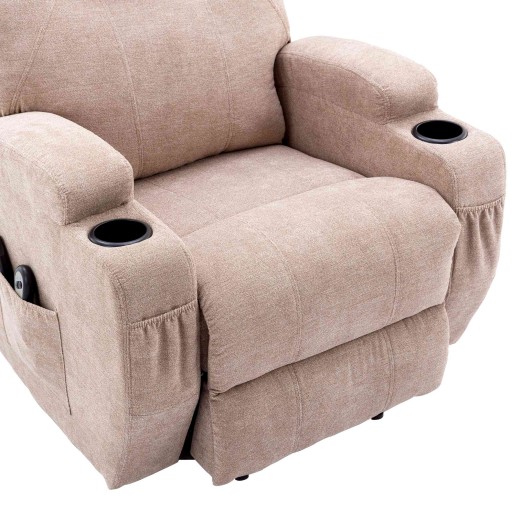 Elektrycznie regulowany fotel masujący dla osób starszych, elektrycznie regulowany fotel, rozkładana sofa z tkaniny z 2 uchwytami na kubki, boczne kieszenie i pilot do salonu