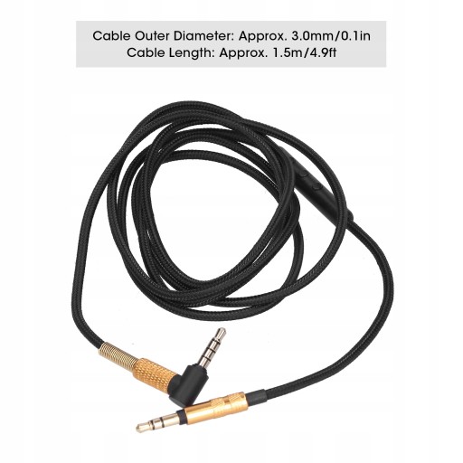- Średnica zewnętrzna kabla: ok. 3,0 mm/0,1 cala
