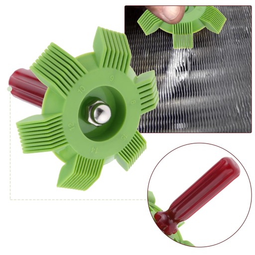 Grzebień do żeberek skraplacza klimatyzatora samochodowego, zestaw szczotek do czyszczenia i czyszczenia żeberek samochodowych, szczotka do skraplacza cewki, szczotka do ubijania powietrza w lodówce samochodowej, narzędzie do naprawy chłodnicy parownika samochodowego (4 szt.)