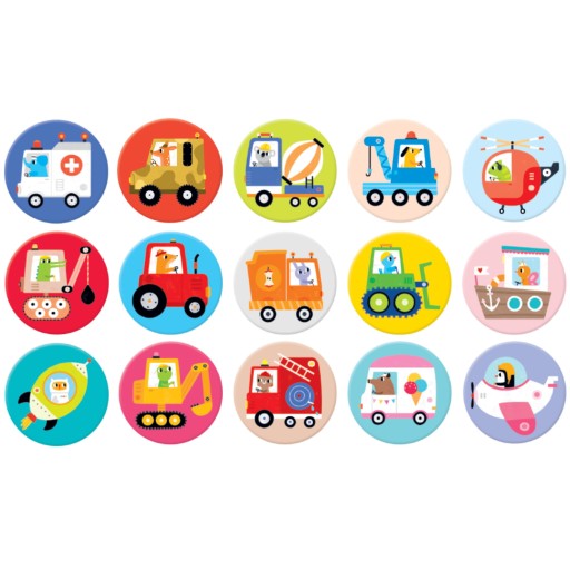 Edukacyjny zestaw zawiera 30 dużych elementów (15 par). Znakomicie sprawdzi się jako pierwsza prosta gra pamięciowa.