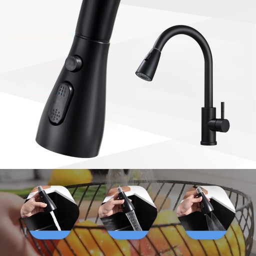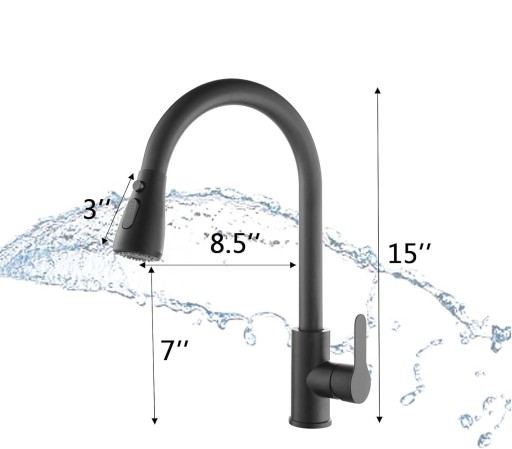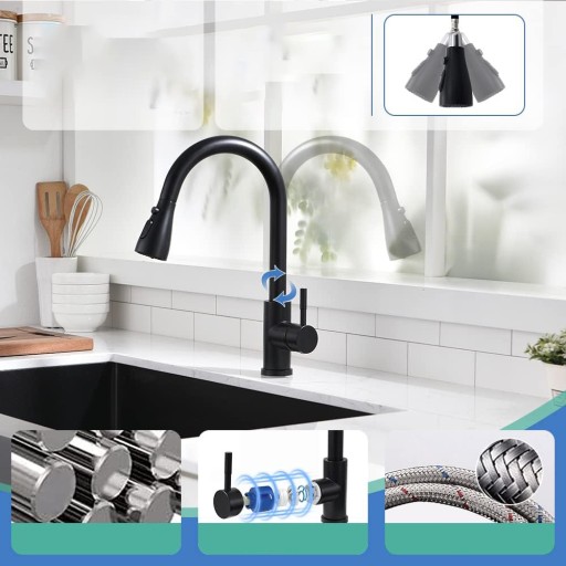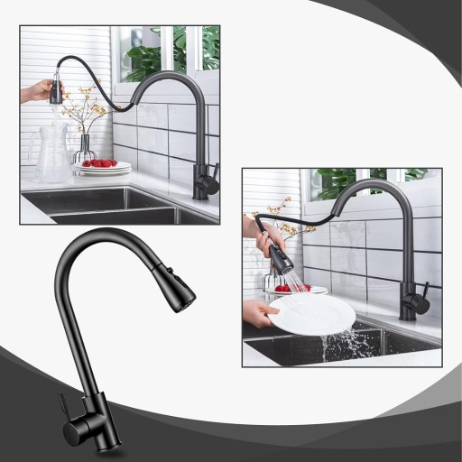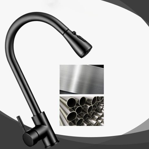 КУХОННЫЙ Смеситель для мойки, ЧЕРНЫЙ, ВЫДВИЖНОЙ ГИБКИЙ ИЗЛИК, ЛЕНТА