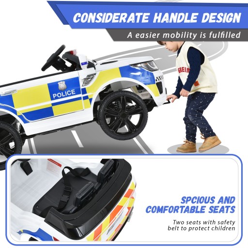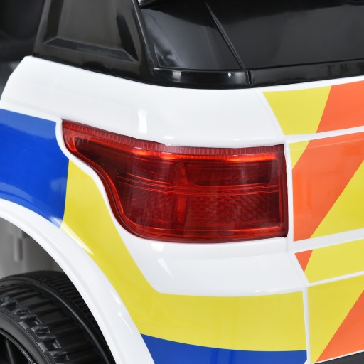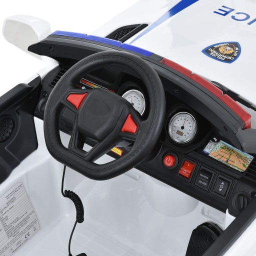 Dzięki policyjnym wzorom i wzorom na karoserii ten samochód elektryczny jest bardzo atrakcyjny dla większości małych chłopców. Oprócz reflektorów i tylnych świateł LED, ten samochód elektryczny ma również specjalnie zaprojektowane światła policyjne, które są profesjonalne i skrupulatnie zaprojektowane. Błyszczący kokpit wyposażony w zamki do drzwi oraz dwa siedzenia dodatkowo podnoszą atrakcyjność dla dzieci.