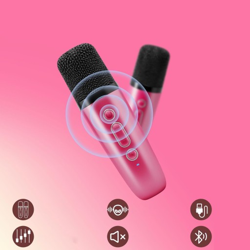 🎶- Urządzenie do karaoke Bluetooth z 2 mikrofonami bezprzewodowymi, automatycznie łączy się z głośnikiem, gdy jest włączony, jego zasięg do 10 m, może oddzielnie sterować ludzkim głosem/efektem echa/głośnością muzyki.