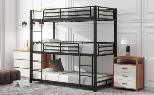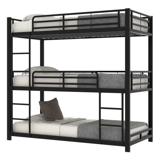Wysokiej jakości materiał: Potrójne łóżko piętrowe wykonane jest ze stalowej ramy o dużej nośności, więc nie musisz się martwić, że łóżko się zawali. Grube stalowe rurki sprawiają, że łóżko jest bardziej stabilne podczas długotrwałego użytkowania.