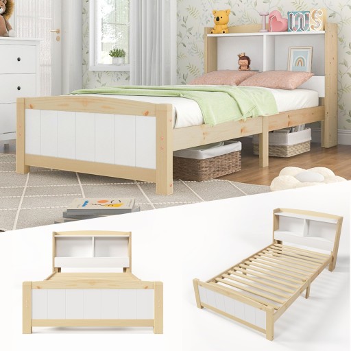 Zagłówek do przechowywania: wielofunkcyjny regał zintegrowany z zagłówkiem zawiera różne przegródki, które można wykorzystać do ozdabiania i przechowywania książek, zabawek, lamp i innych akcesoriów. Ta zrozumiała konstrukcja pozwala zaoszczędzić dodatkową przestrzeń i koszty związane z szafką nocną i jest idealnym rozwiązaniem dla małych pomieszczeń mieszkalnych.