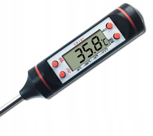Pozwala on na wygodną kontrolę temperatury dowolnego produktu. Jest idealny w kuchni podczas gotowania aby sprawdzić temperaturę gotowanej potrawy.