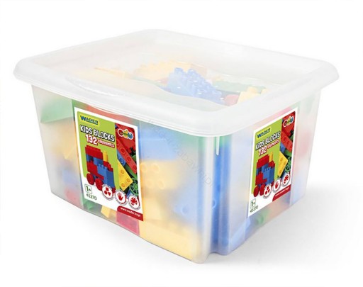 Klocki, zestaw, 132 elementy w pojemniku - doskonała propozycja dla małych konstruktorów.