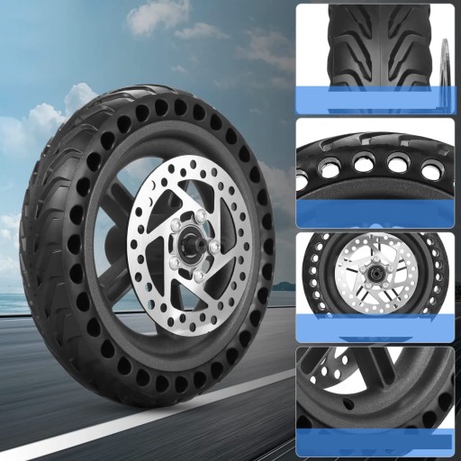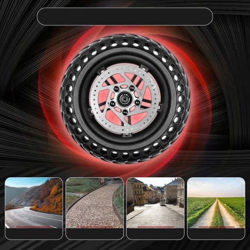 Odporne na przebicie jednoczęściowe opony pełne wykonane ze stopu aluminium i mocnych opon gumowych o dużej gęstości, odporne na zużycie i trwałe, chronią przed przebiciem opon i ciągłym pompowaniem, idealny zamiennik zużytych opon skutera.