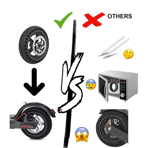 Produkt zawiera 8,5-calowe opony z pełnej gumy i wbudowane felgi ze stopu aluminium, odpowiednie do skutera elektrycznego Xiaomi M365, najlepsze rozwiązanie w przypadku przebitych opon i wymiany opon. Przed zakupem należy sprawdzić numer modelu hulajnogi elektrycznej. Pełna opona na tylne koło hulajnogi.