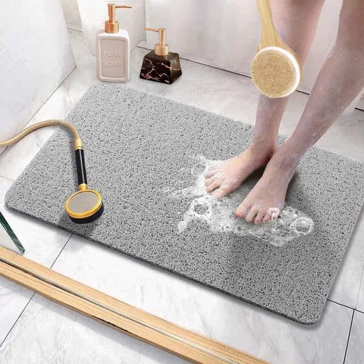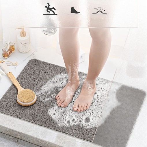 Mata prysznicowa wykonana jest z wysokiej jakości PVC, który ma wyższe właściwości antypoślizgowe. Trzymaj matę łazienkową bezpiecznie na miejscu, aby się nie przesuwała (przed użyciem przetestuj matę łazienkową stopą, aby upewnić się, że się nie poruszy).