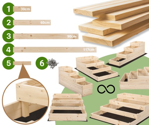 Drewniana kaskadowa skrzynia na warzywniak - ZESTAW OGRODNIKA GRATIS - zapoznaj się z olbrzymią ilością dostępnych kombinacji bezpośrednio od polskiego producenta!