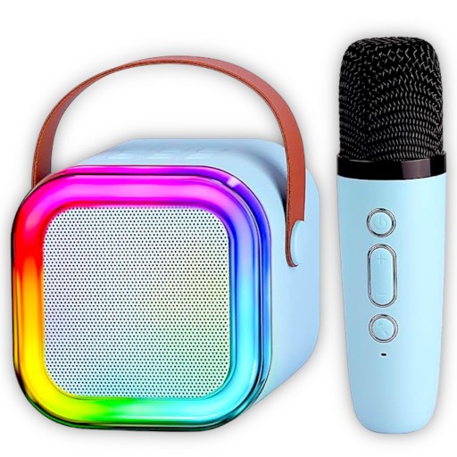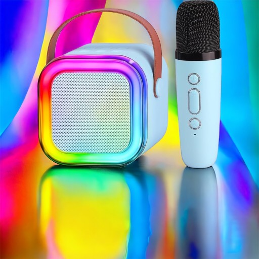 Dwuczęściowy, bezprzewodowy zestaw do karaoke mikrofon + głośnik. To świetlne źródło rozrywki i towarzysz imprez. Twoje imprezy wejdą na wyższy poziom.