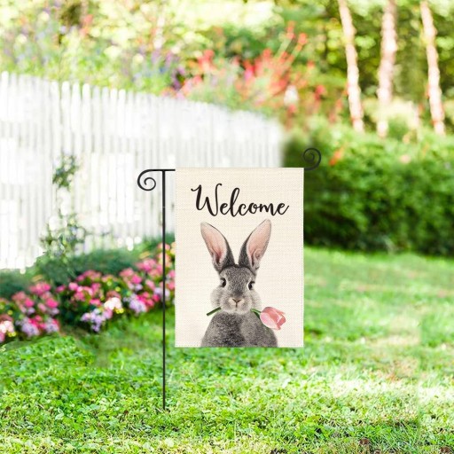 DEKORACJA WIELKANOCNA KRÓLIKI FLAGA OGRODOWA 30 x 45 CM
