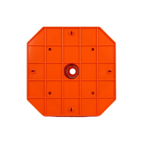 Plastikowa podstawka zapewnia stabilne ustawienie pachołka oraz chroni go przed podmuchami wiatru. Wyposażony został w dwa pasy odblaskowe dzięki czemu widoczny jest z daleka.
