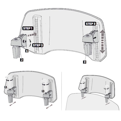 - wsuń deflektor na szybę Twojego motocykla, ważne aby łapki były luźne i same ustawiły się do jej kształtu