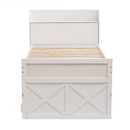 Łóżko pojedyncze łóżko z litego drewna sosnowego 90x190 wielofunkcyjne z wysuwaną szufladą rama z listew, stolik nocny z półkami z gniazdem USB łóżko młodzieżowe łóżko gościnne Biały
