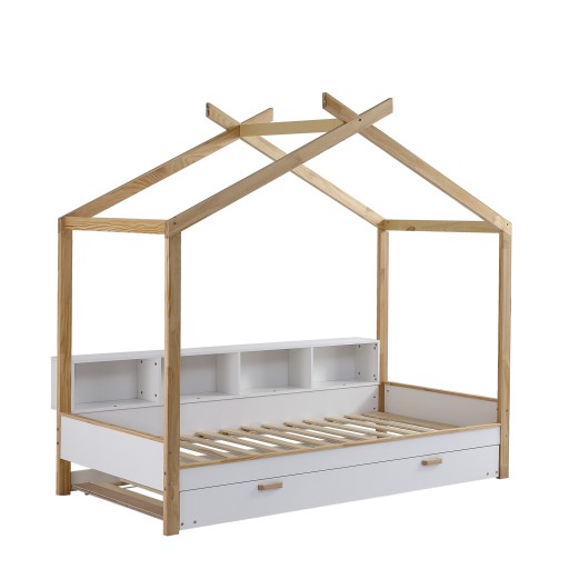 Zabawny projekt łóżka domek z blokowaniem kolorów: Łóżko domek zachwyca zabawnym designem z atrakcyjnym połączeniem kolorów w kolorze białym i naturalnym. Taka konstrukcja nadaje łóżeczku urokliwego i przyjaznego dziecku charakteru.