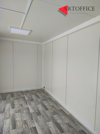 - Podłoga: Płyta warstwowa z rdzeniem styropianowym o grubości 100mm, przenikalności termicznej 0,38w/m2k dodatkowo wzmocniona płytą OSB i wykończona wykładziną PCV