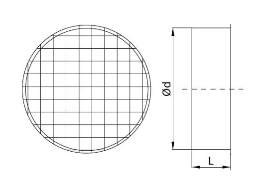Króciec zakończający z siatką ocynk o średnicy Ø 300 do kanału okrągłego. Symbol: ILSN-300