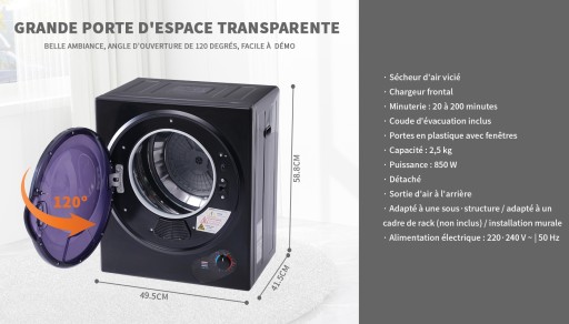 [Duże przezroczyste drzwi przestrzenne] Kąt otwarcia 180 stopni, łatwy do demontażu. Przez okno można także zobaczyć proces suszenia.