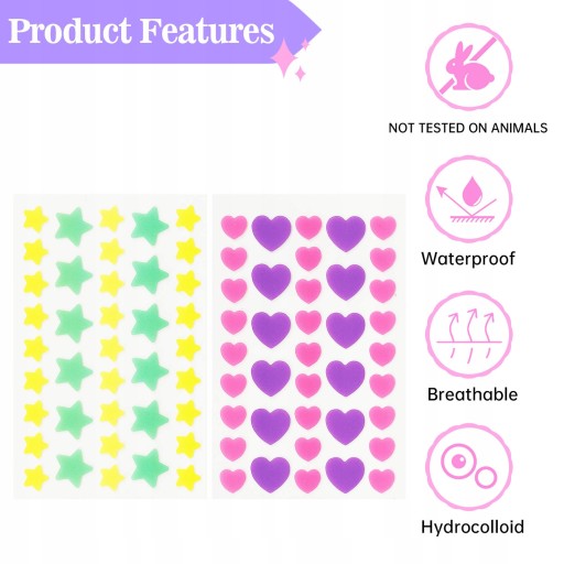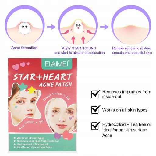 2. Specjalne kształty: Plaster leczący pryszcze, w kształcie serca i gwiazdy, ładny i piękny, odpowiedni do użytku na co dzień i na noc.