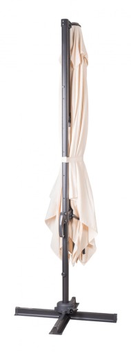 Parasol przeciwsłoneczny TUSCON kwadratowy 3 x 3 m ma 8 żeber stalowych 12 x 18 mm, jest wyprodukowany z poliestru 180g / m2. Mocny drążek aluminiowy o przekroju 50 x 67 mm. Stojak (częścią produktu) można obciążyć płytami betonowymi do lepszej stabilności ogólnej. Otwieranie parasola dokonywane jest przy pomocy korby. Parasol można obracać wokół osi i nachylać. Kolor szary / drążek stalowy czarny.