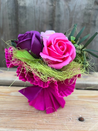Otrzymujesz uroczy prezent gotowy do wręczenia! Mydlany bukiet zachwyci każdą kobietę swoim wyglądem i zapachem.