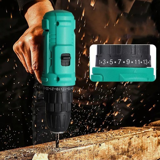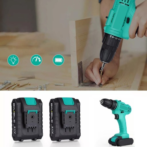 Wiertarko-wkrętarka akumulatorowa z akumulatorem i ładowarką: Wiertarka elektryczna 21 V jest wyposażona w akumulator litowy 1500 mAh i szybką ładowarkę, dzięki czemu można jej używać przez długi czas między ładowaniami. Maksymalny moment obrotowy 45 nm zapewnia dużą nośność, która zaspokoi wszystkie codzienne potrzeby. Ponadto światła robocze LED zapewniają doskonałe warunki pracy w ciemności.