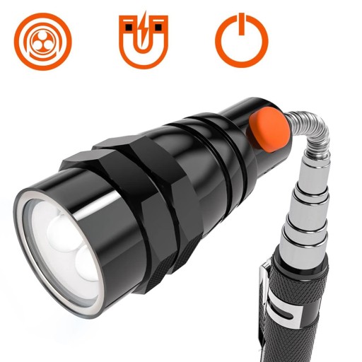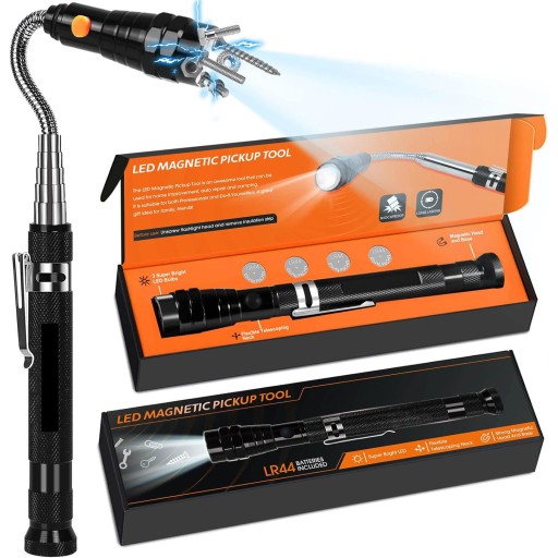 - Wysuwany trzonek, elastyczna szyjka, głowica i podstawa magnesu, Końcówki magnetyczne umożliwiają zbieranie podkładek, śrub, nakrętek lub śrub, kiedy potrzebujesz trzecia ręka.