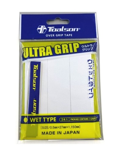 Owijka Toalson Ultra Grip wierzchnia lepka, o grubości 0,5 mm, pakowana po 3 sztuki w kolorze białym.
